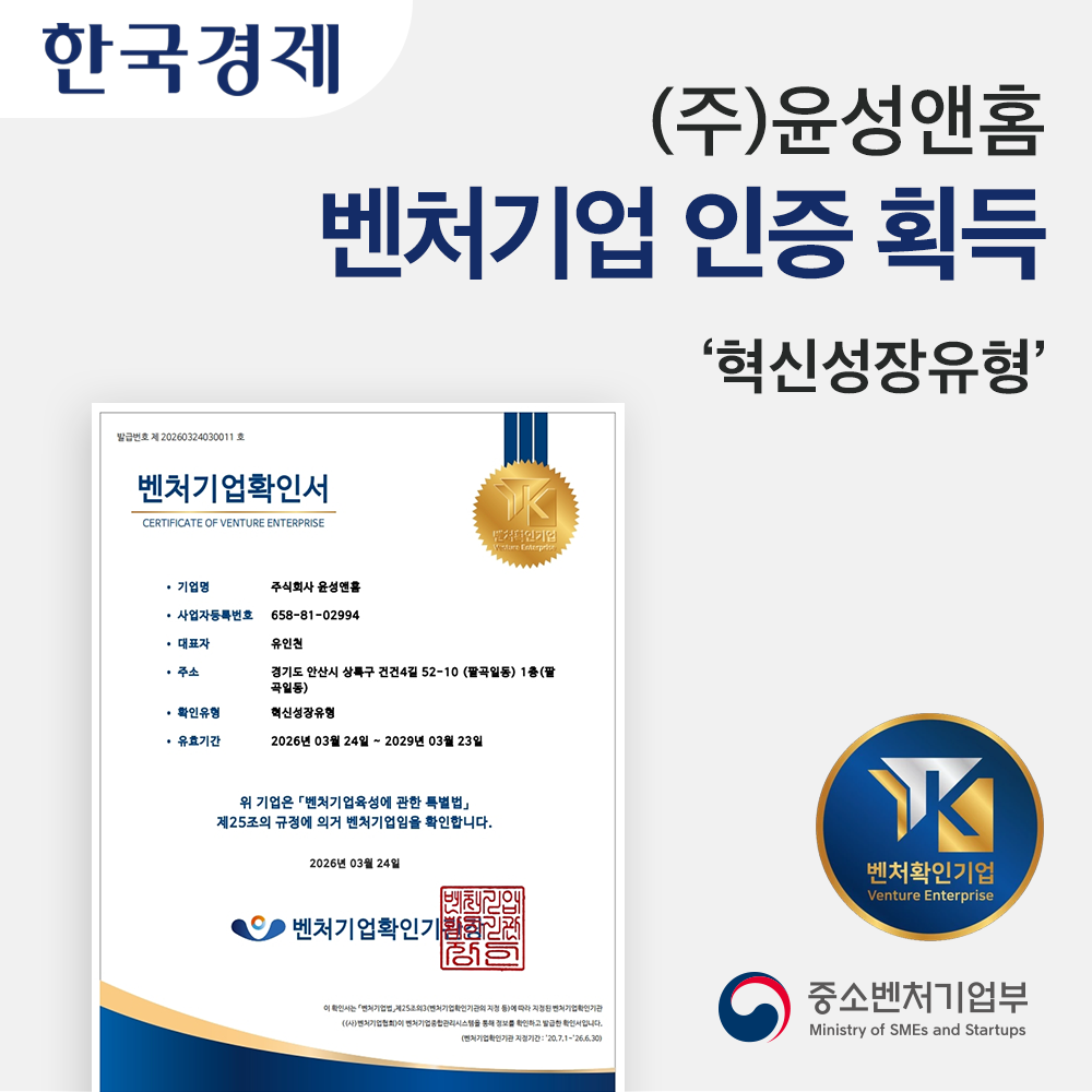 [한국경제] 윤성앤홈, '혁신성장유형' 벤처기업 인증 획득