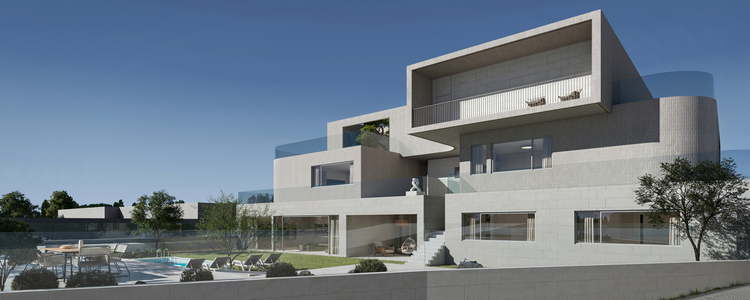 도심 속 고요한 쉼, Urbanoasis. 석재의 중후함과 유리의 투명함이 어우러진 모던한 안식처.