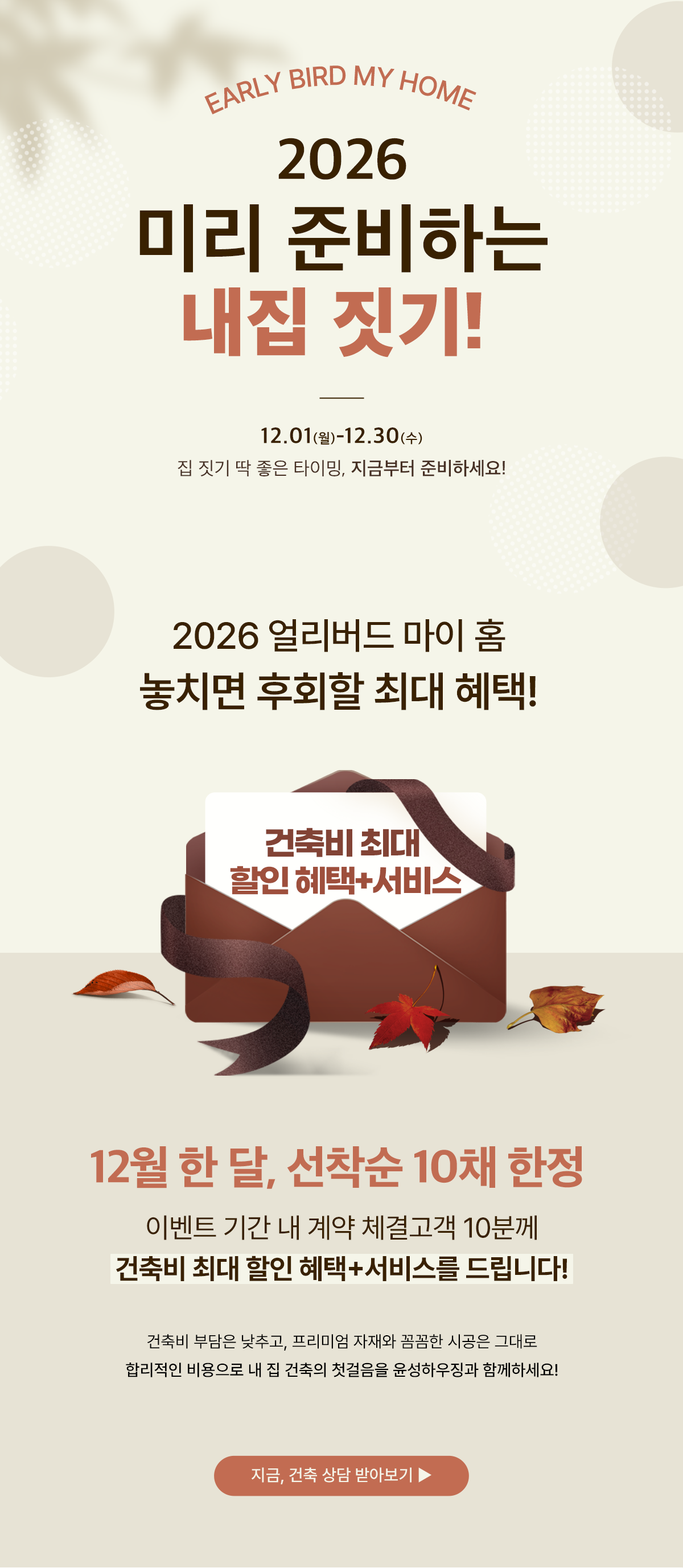 2026 얼리버드 마이 홈, 미리 준비하는 내 집 짓기!